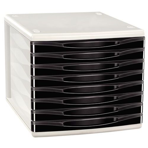 Meget brede skuffer, der kan rumme dokumenter op til format 24 × 32 cm og indeholde op til 200 ark.
