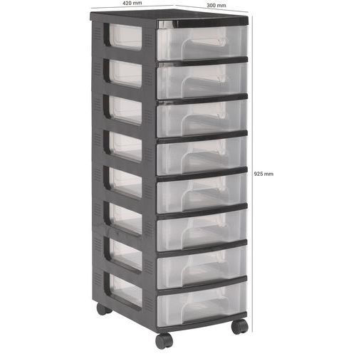 Skuffesektion på 4 hjul, som er meget let at håndtere. Transparente kasser, som giver et bedre overblik over indholdet, og tæt konstruktion, som beskytter mod støv. Perlemorsfarvede overflader på siderne til nem mærkning. Fremstillet i Storbritannien
