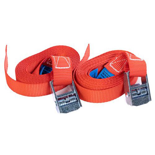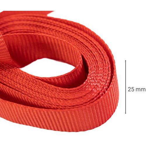 | Varenavn | Spændebånd 250 kg, Længder: 3 m, Sikker arbejdsbelastning: 250 kg, Bredde: 25 mm, Type af krog: Løkke |