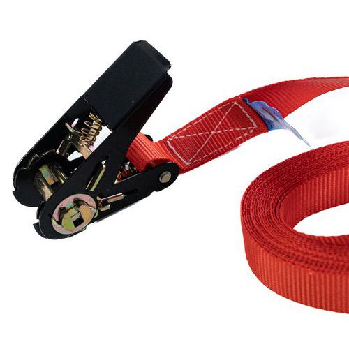 | Varenavn | Spændebånd 350 kg, Længder: 5 m, Sikker arbejdsbelastning: 350 kg, Bredde: 25 mm, Farve: Rød |