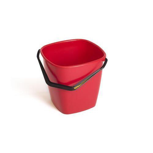 - Kvadratisk spand fremstillet i slagfast polypropylen-plast med gribevenligt håndtag i plast. Stabelbar. Egnet til enhver form for rengøring.