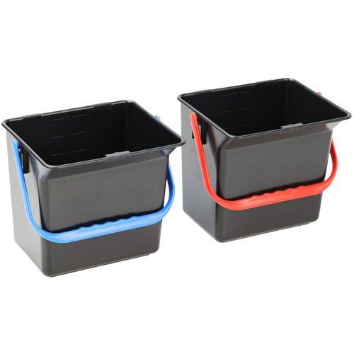 Spand til vogn med farvede håndtag til differentiering mellem snavset vand og rent vand. Praktisk og nem at bruge. Meget stabil takket være sin form. Alle Manutan produkter er testet og godkendt af vores teams.
