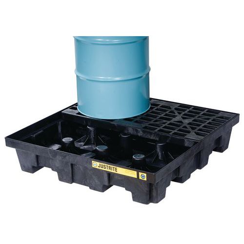 - Spildbeskyttelsesbassiner fremstillet af 100 % genbrugt polyetylen. Beskytter miljøet og arbejdspladsen mod spild og lækage. Tilpasset til opbevaring af tønder. Modstandsdygtig over for de fleste kemikalier, såsom olier, terpentin, syrer og baser. Ristene er aftagelige og lette at rengøre.