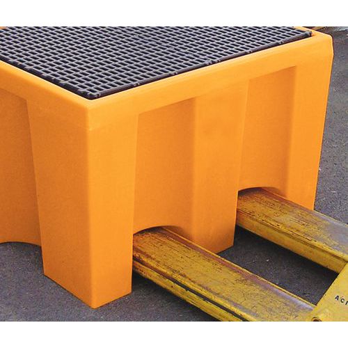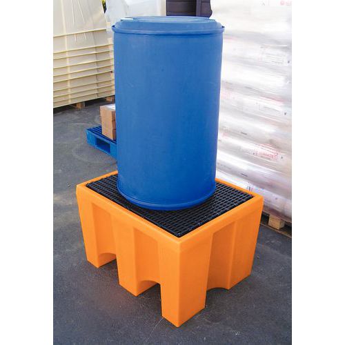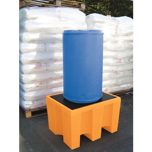 - Stabile spildbeskyttelsespaller i polyethen. Modstandsdygtig overfor korrosion og de fleste væsker, såsom syrer, baser og olier. Flytbare ved hjælp af truck. Aftageligt beskyttelsesrist i polyethen eller galvaniseret stål.