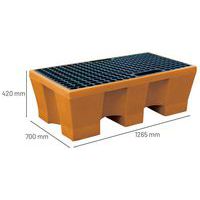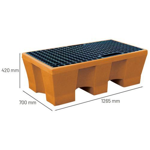 | Varenavn | Opsamlingskar til 2 tønder med gitter, Retentionskapacitet: 240 L, Farve: Orange, Kapacitet (antal tønder): 2 |