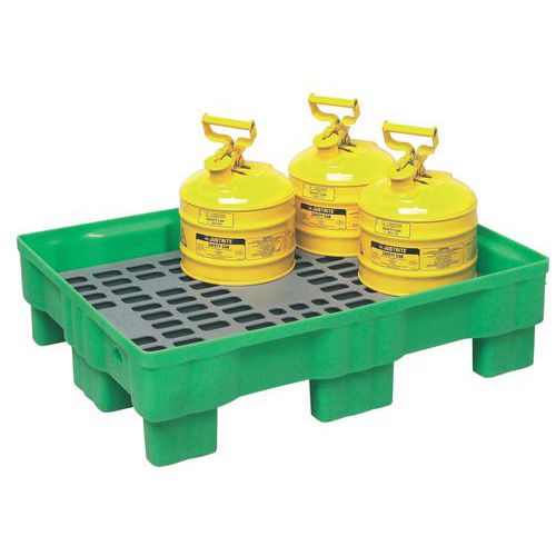 - Palle til opbevaring af kemiske, sure og basiske produkter. Bedre modstandsdygtighed takket være opsamlingsbakke med palleindsats. Enkel rengøring. Materialehåndtering er muligt selv i lastet tilstand. Kan flyttes på vogn eller med en palleløfter (4 indgange).