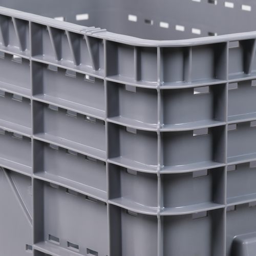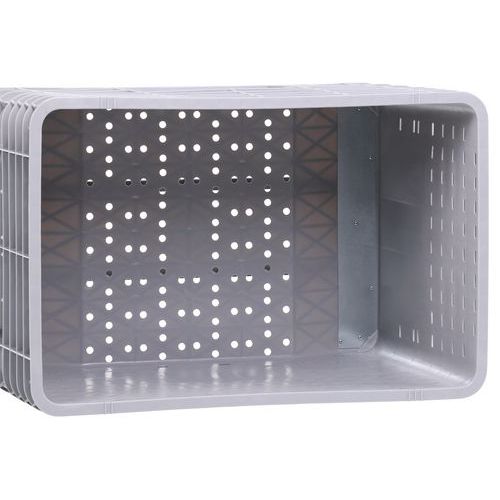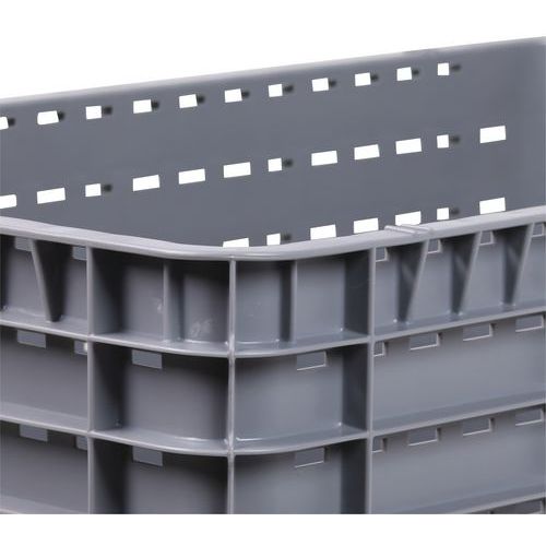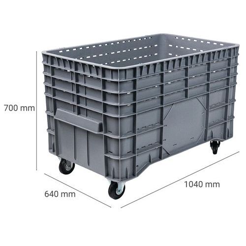 | Varenavn | Pallecontainer stabelbar, ventilerede sider, på hjul , Volumen: 300 L, Maksimal last: 120 kg |
