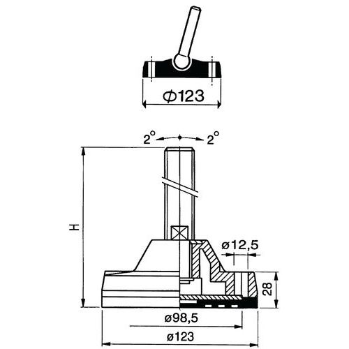 Stillefod i polyamid - Ø 123 mm - 4500 kg - Forzinket stål