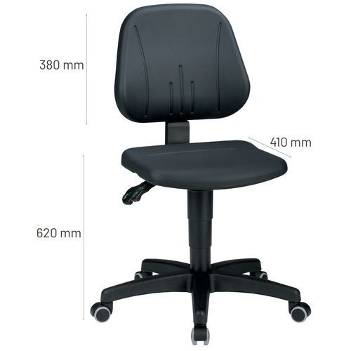 | Varenavn | Stol Unitec 9653-2000, Type af fod: Hjul, Sæde, materiale: Polyuretan, Sæde model: Lav, Fodring Ø: nej |
