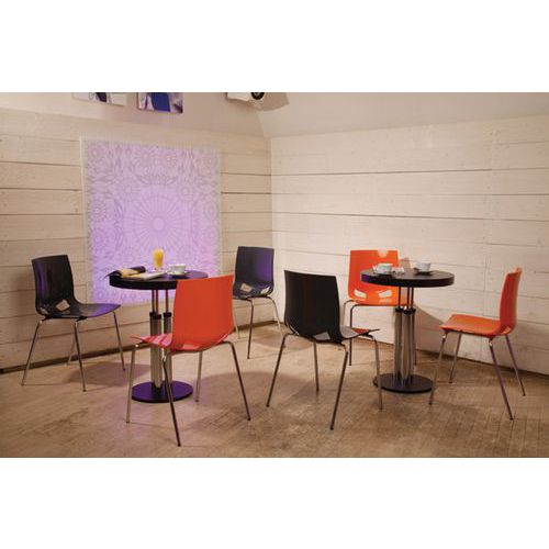 - Skal i højglansfinish. 4 forkromede ben. Helstøbt sæde. Kan stables i stabler med 6 stk. Dupsko, som ikke glider eller efterlader mærker.