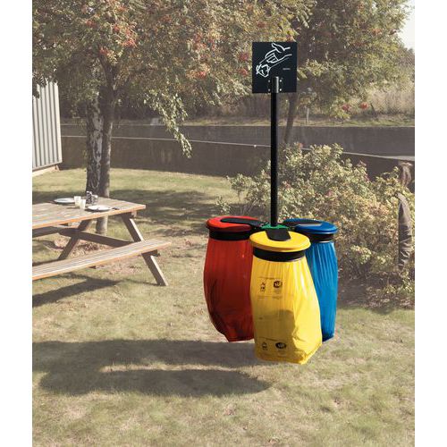 | Varenavn | Stolpe til 3 sækkestativer Ecollecto, Materiale: Metal, Farve: Grå, Højde: 90 cm, Model: Trippel |