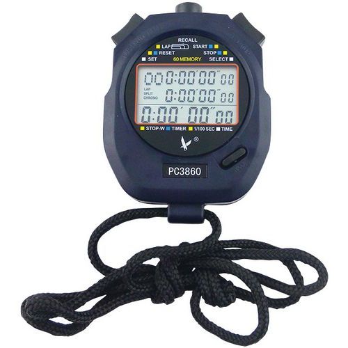 - Manutan-stopur fra 1/100 sekund. Visning af omgangstider (lap), mellemtider (split) og akkumuleret tid. Hukommelse: 300 omgangstider (lap) og mellemtider (split). Registrering af 99 sekvenser for hver tid. Stopur med visning.