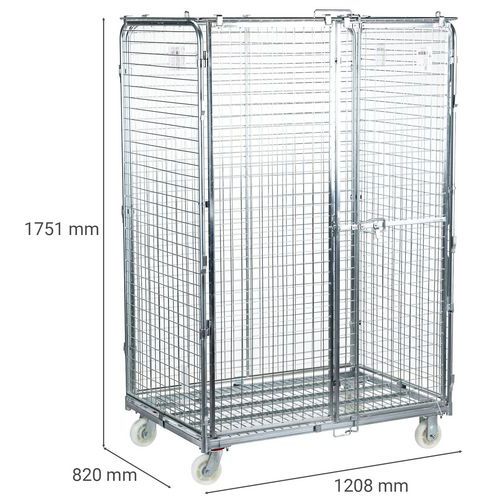 | Varenavn | Stor rullecontainer, Kapacitet: 600 kg, Totalhøjde: 1751 mm, Totallængde: 1208 mm, Totaldybde: 820 mm |