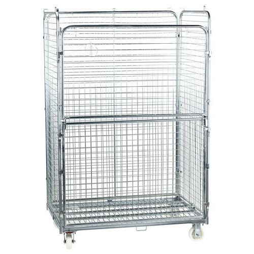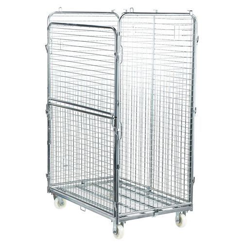 | Varenavn | Rullecontainer tresidet med frontåbning, Kapacitet: 600 kg, Totalhøjde: 1751 mm, Totallængde: 1208 mm |