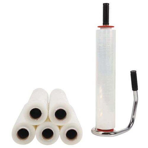| Varenavn | Strækfilm 500 mm med holder, transparent , Tykkelse: 20 µm, Længde: 300 m, Bredde: 500 mm, Invendig Ø: 50 mm |