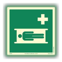 - Ensiddet skilt, der angiver placeringen af en sygebåre.