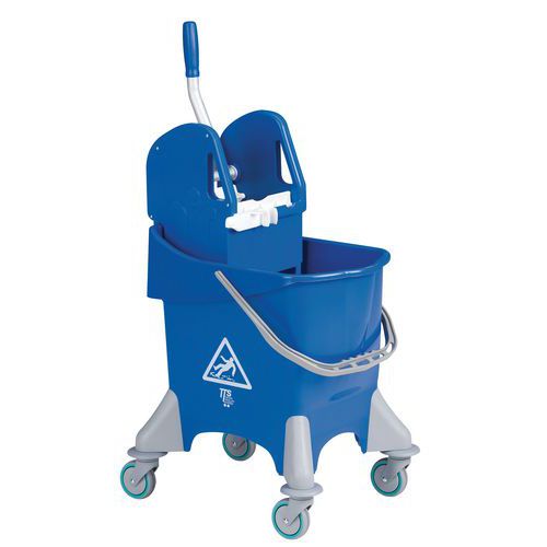 - Særligt velegnet til brug i miljøer, hvor der håndteres fødevarer, eller hvor hygiejnen er meget vigtig. Med 4 drejelige hjul og opvrider til garnmoppe. Leveres uden skaft.