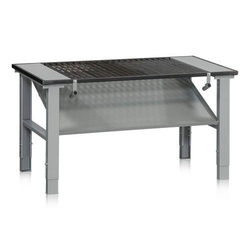 - Arbejdsfladen består af stående fladjern i en stålrørsramme og er designet til både lodning og svejsning.