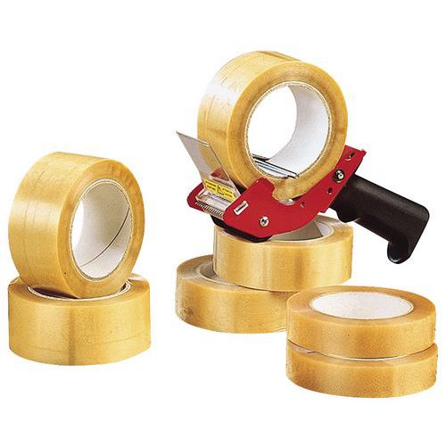 God klæbeevne også på returfiber og plastfilm. Stille afrulningslyd. Uelastisk. Klæbemiddel af naturgummi.