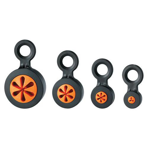 Fås i fire størrelser, som er kompatible med værktøj fra 1,3–4 mm / 0,03–0,11 kg (Small), 4–5,5 mm / 0,23 kg (Medium), 5,5–8 mm / 0,34 kg (Large) og 8–12 mm / 0,45 kg (XL).