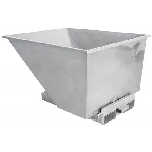 - TS TIPPO er en vippecontainer, fremstillet i rustfrit stål af kvalitet 304, særligt designet til barske miljøer og til brug i fødevareindustrien.