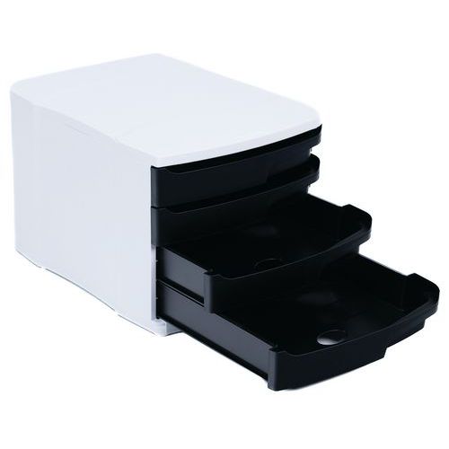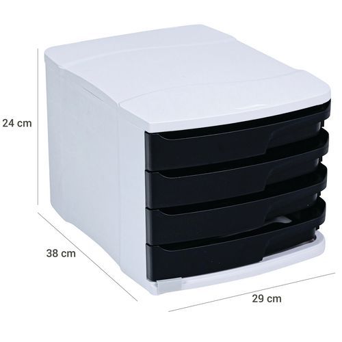 | Varenavn | Tofarvet arkiveringsenhed, 4 skuffer , Materiale: Polypropylen, Antal skuffer: 4, Totalhøjde: 24 cm |
