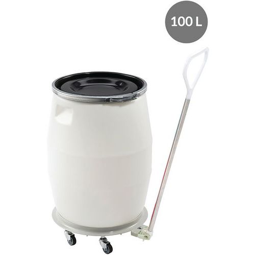 | Varenavn | Tønde 100 l, der kan åbnes helt, med integrerede håndtag – hvid – GILAC, Volumen: 100 L, Totalhøjde: 654 mm |