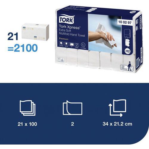 | Varenavn | Tork Premium H2 håndklæder – kædefoldede, Farve: Hvid, Type produkt: Ekstra blødt foldet håndklæde, Format |