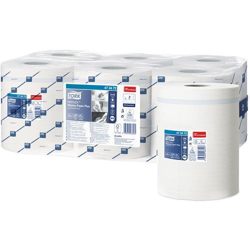 Tork Reflex Plus aftørringsrulle med fremføring fra midten Tork Reflex Plus aftørringsrulle med fremføring fra midten