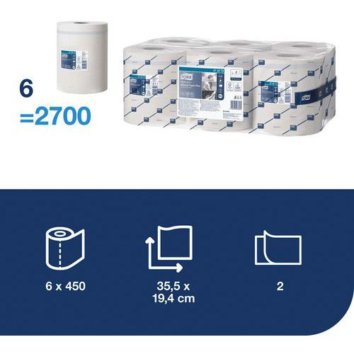 Tork Reflex Plus aftørringsrulle med fremføring fra midten, Farve: Hvid, Type produkt: Papirrulle, Lag: 2 Tork Reflex Plus aftørringsrulle med fremføring fra midten, Farve: Hvid, Type produkt: Papirrulle, Lag: 2