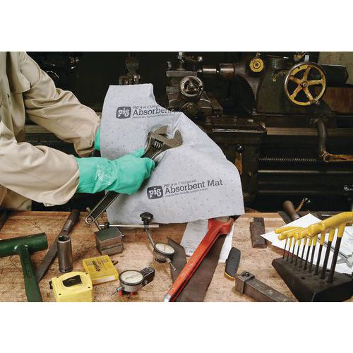 Alsidigt universal tørklæde på rulle lavet af 100% polypropylen. Rullen er 24 m lang og 41 cm bred og absorberer 34,8 liter. Klædet er perforeret hver 25 cm og er let at folde. Leveres i en praktisk boks med håndtag og vejer i alt 4,5 kg. Riv lidt af klædet ved midlertidigt spild, der skal tørres hurtigt op. Den bliver på plads, og dens overflade er slidstærk. Tør hurtigt snavs op! Kluden er stærkere end almindelige tørreklude og holder dermed længere. Fungerer rigtig godt til hurtig rengøring af olierede maskiner. Fold kluden til en tyk, smal sok og sug lækager op under og ved siden af dine maskiner.