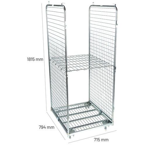 | Varenavn | Rullecontainer tosidet med en hylde, Kapacitet: 400 kg, Totalhøjde: 1815 mm, Totallængde: 794 mm |
