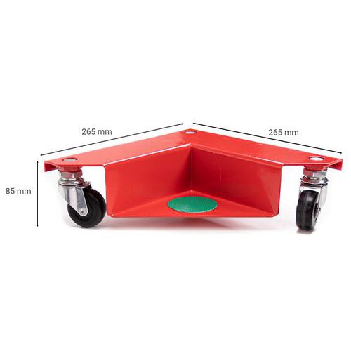 | Varenavn | Transporthjørne 600 kg, Kapacitet: 600 kg, Længder: 265 mm, Bredde: 265 mm, Højde: 85 mm, Frihøjde: 27 mm |