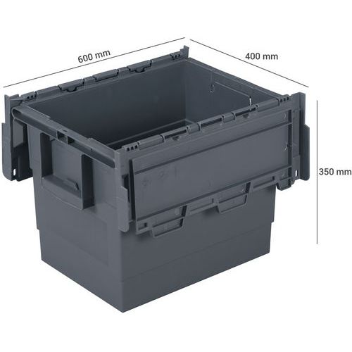 | Varenavn | Transportkasse Integra 600 mm, Volumen: 64 L, Materiale: Plastic, Totalhøjde: 350 mm, Totalbredde: 400 mm |