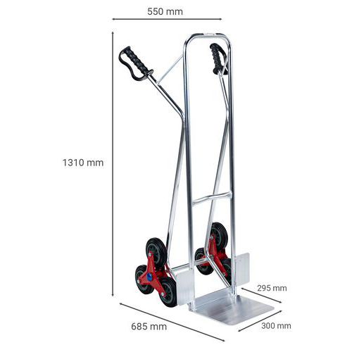 | Varenavn | Trappegående magasinvogn 150 kg, Materiale: Aluminium, Kapacitet: 150 kg, Hjul, Ø: 155 mm |