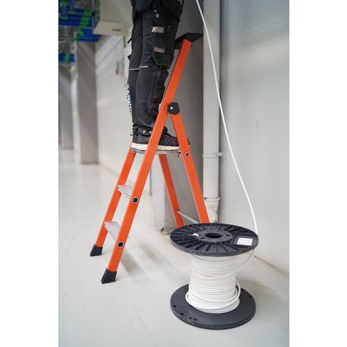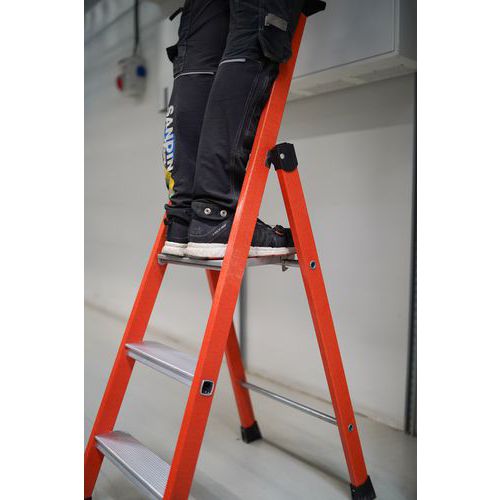 - Trappestige Glasfiber, en stabil trappestige med vanger i glasfiber samt trin og platform i aluminium.