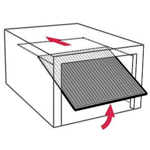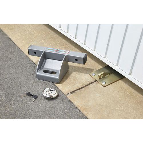 Yderdørstoppere kan fastgøres til garageporte, der åbner lodret med 2 bolte for at forhindre denne type døre i at åbne.