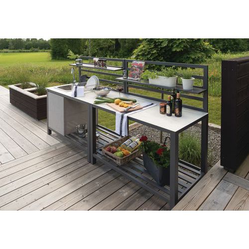 | Varenavn | Udekøkken Åminne arbejdsbord grå aluminium, Totallængde: 120 cm, Form: Rektangel, Skive, materiale: Laminat |