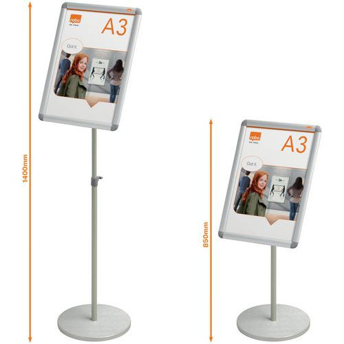 | Varenavn | Udstillingsstativ til clip-on plakatholder Nobo i A3-format, Antal rum/søjle: 1, Farve: Sølv, Højde: 147.5 cm |