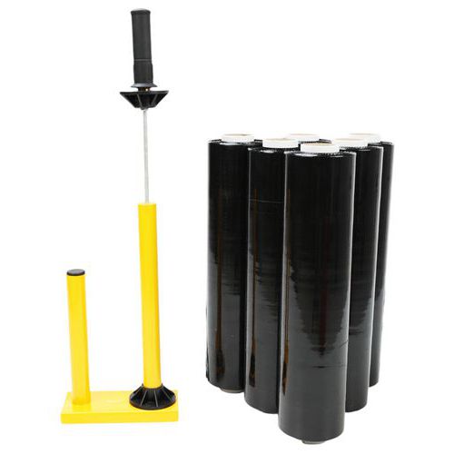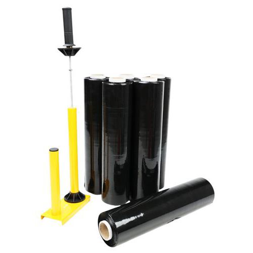 | Varenavn | Uigennemsigtig strækfolie, pakke med stål dispenser , Tykkelse: 17 µm, Længde: 300 m, Bredde: 450 mm |