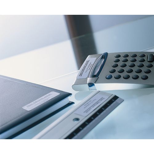 Manipulationssikkert og rivefast tekstilmærke. Øget modstandsdygtighed over for snavs, olie, UV-stråler og fugtighed. Temperaturområde: - 20 til + 80 °C. Multioverflade: lakeret træ, groft eller malet metal, glas og glat plast.