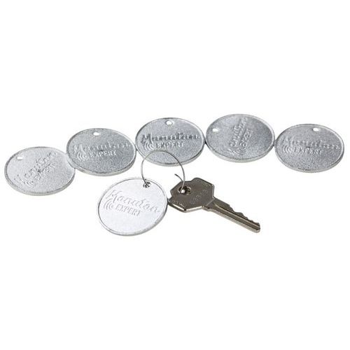 - Unummererede poletter med hul, til enkel fastgørelse i ring eller kæde.