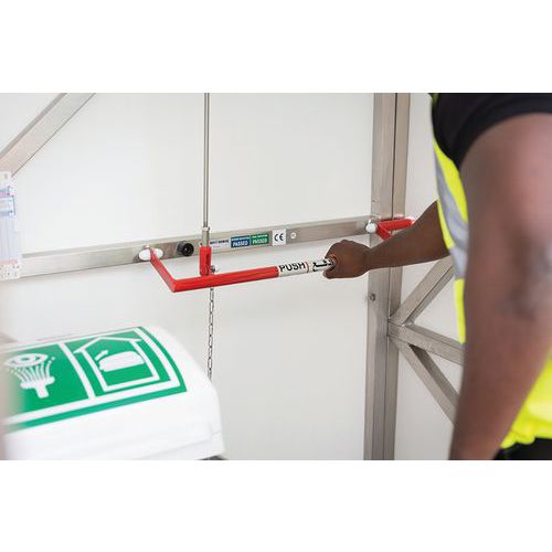 - Selvstændig sikkerhedsbruser og øjen-/ansigtsbad med 350 liters tank.