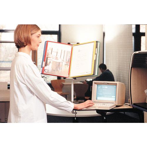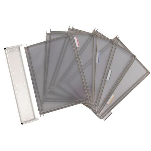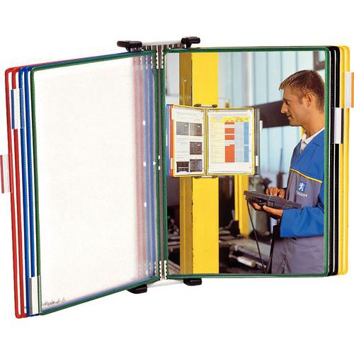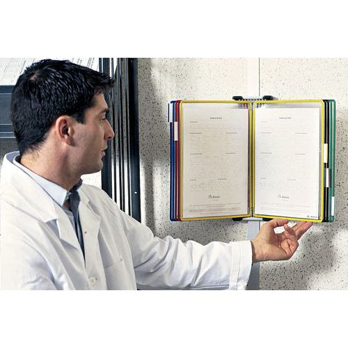 Tilpas stativet efter behov – mulighederne er uendelige! Vægstativet passer ind i alle typer rum. Gør det let at finde rundt i dine dokumenter ved hjælp af etiketholdere med indstiksblade i forskellige farver. Leveres med 10 præsentationslommer i A4-format, 5 etiketholdere (50 mm) med ufarvede og farvede indstiksblade, 4 sidestøtter og monteringsmateriale. Tilbehør til Vægstativ Tarifold 10.