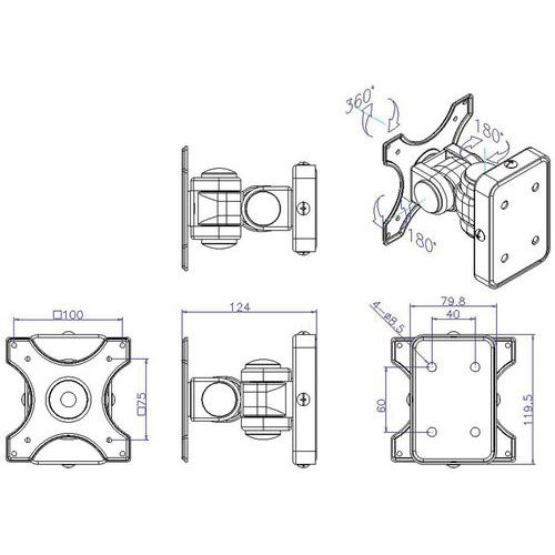 | Varenavn | Vægbeslag til drejelig skærm , Maksimal last: 15 kg, Type af fastgørelse: Væg, Farve: Sort |