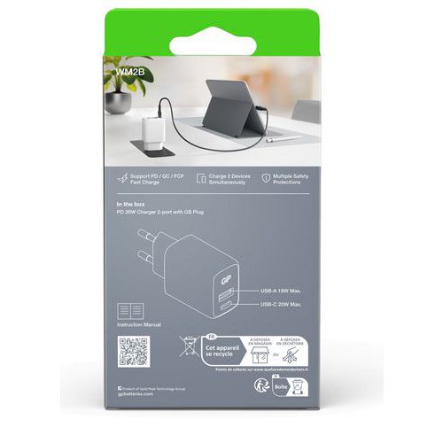 | Varenavn | Væglader WM2B, PD 20W, USB-A/USB-C, Længde: 80 mm |