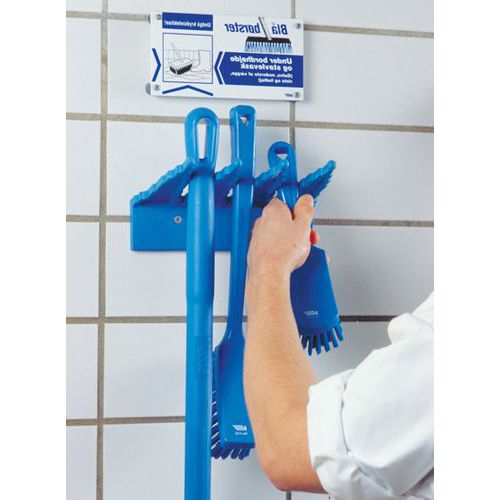 Til organiseret opbevaring af rengøringsredskaber. Redskaberne klemmes ganske enkelt ind mellem de vægfaste tænder. Er også velegnet til forskellige typer af værktøj.