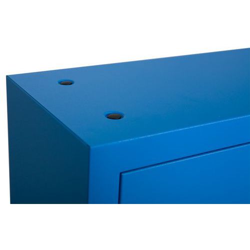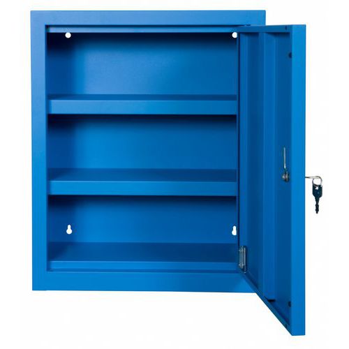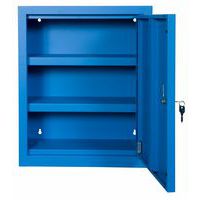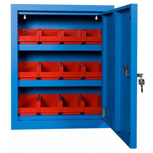 Vægskab 12 røde plastkasser, Materiale: Stål, Totalhøjde: 580 mm, Totalbredde: 470 mm, Antal hylder: 2