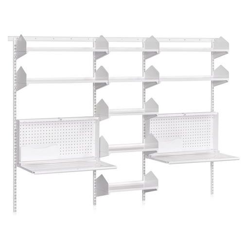 - Skru skinnen direkte fast på væggen, og brug den sammen med en bæreliste for at lette arbejdet ved ombygning og flytning.