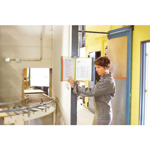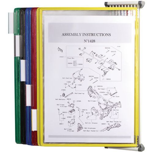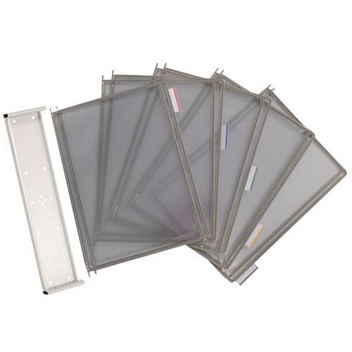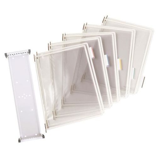 Tilpas stativet efter behov – mulighederne er uendelige! Vægstativet passer ind i alle typer rum. Gør det let at finde rundt i dine dokumenter ved hjælp af etiketholdere med indstiksblade i forskellige farver. Leveres med 10 præsentationslommer i A4-format, 5 etiketholdere (50 mm) med ufarvede og farvede indstiksblade, 4 sidestøtter og monteringsmateriale.